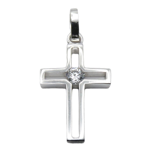 Kreuz-Anhänger in 925/-Silber glänzend, mit weißem Zirkonia - Taufe - Kommunion - Konfirmation