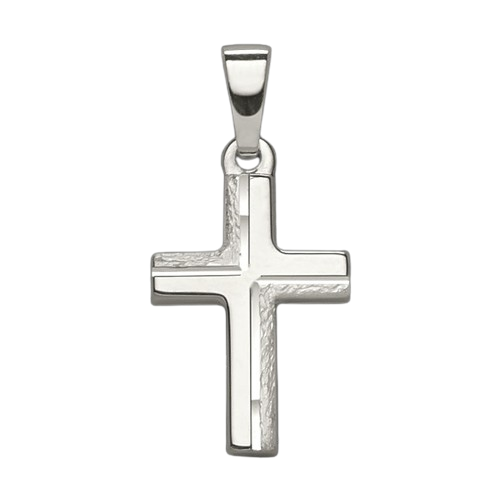 Kreuz Anhänger, 925/- Silber, diamantiert und poliert - Taufe - Kommunion - Konfirmation